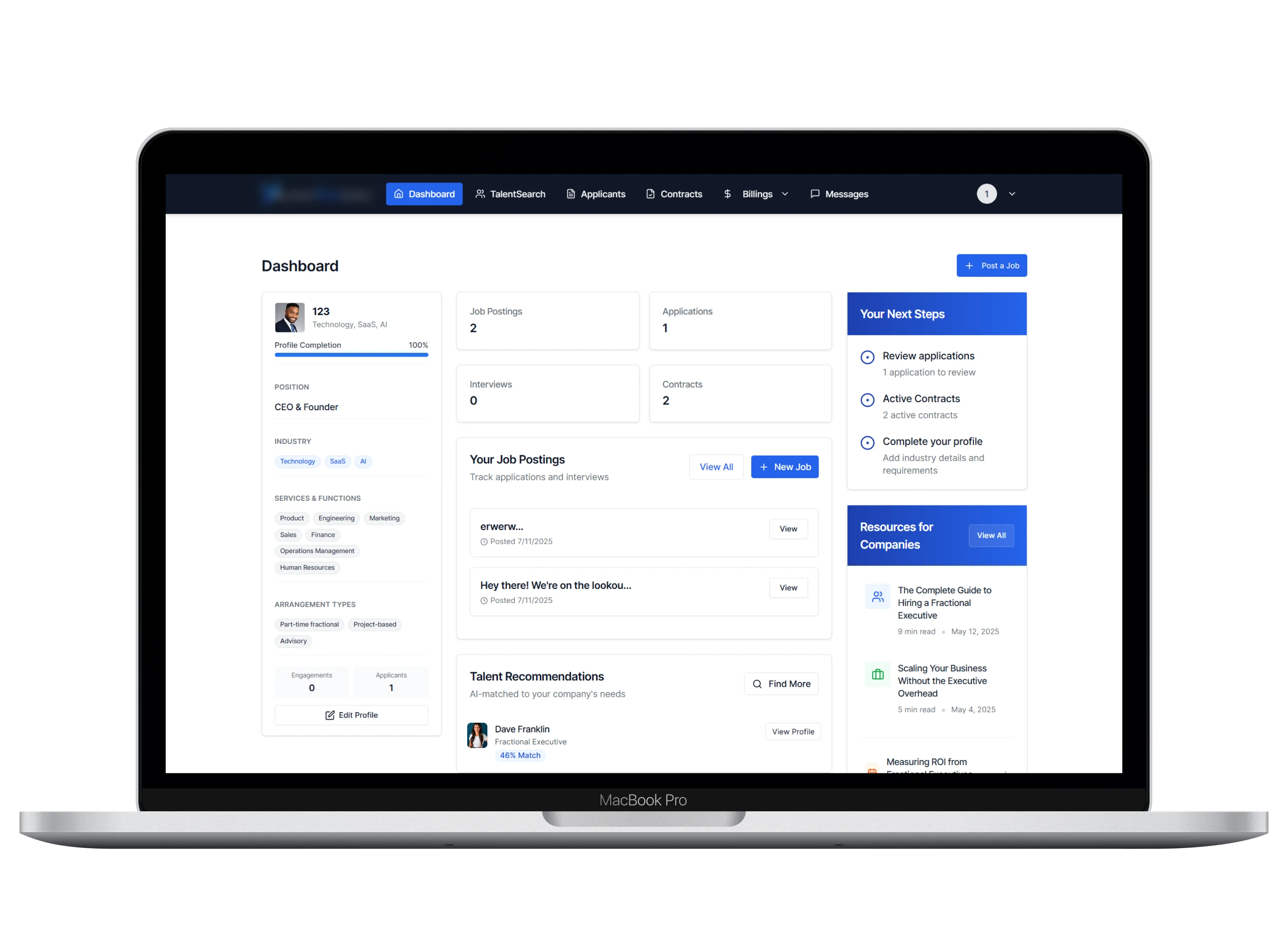 An online marketplace designed to connect startups and small businesses with experienced part-time executives, offering flexible leadership solutions without the cost of full-time hires. The platform allows companies to create profiles, post jobs, and match with executives based on strategic needs and industry fit.